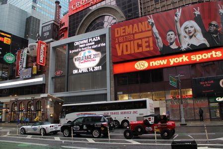 Fourteen teams leave the Crowne Plaza Hotel in Times Square bound for Paris!